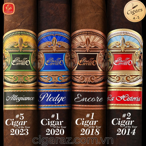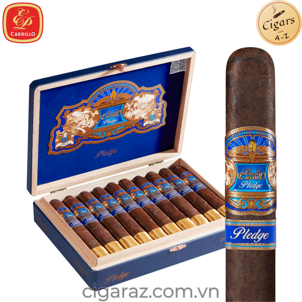 BRANDSE.P Carrillo PledgeE.P Carrillo Pledge là bản phát hành thứ ba trong Serie Perez-Carrillo đình đám, bao gồm La Historia nhằm tri ân lịch sử của gia đình Perez-Carrillo trong ngành công nghiệp thuốc lá; Encore, dành riêng cho các cháu của Carrillo thì The Pledge dành riêng cho những người đam mê xì gà. Nó cũng thể hiện lời hứa của Ernesto Perez-Carrillo với người hâm mộ của mình là “… không bao giờ ngừng làm việc với những loại thuốc lá tốt nhất và mang đến những cách pha trộn mới và sáng tạo…” The Pledge được chế tác thủ công tại nhà máy Tabacalera Alianza nổi tiếng của Carrillo ở Cộng hòa Dominica.
